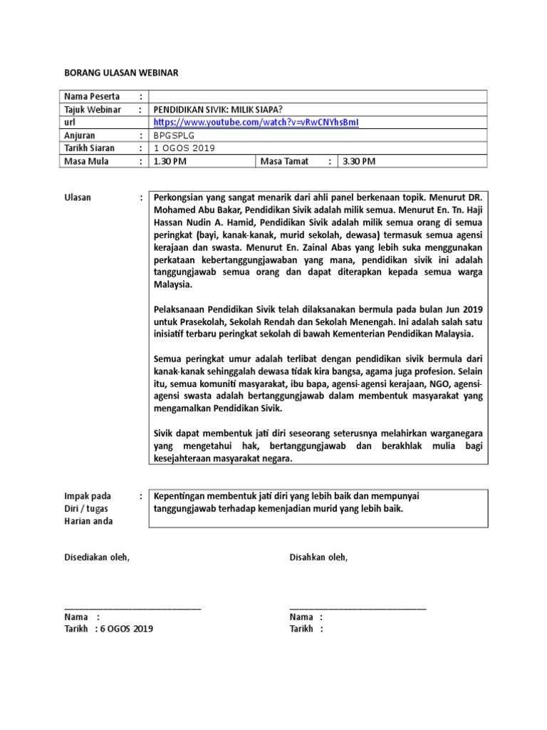 Pendidikan sivik bermatlamat untuk melahirkan warganegara yang mengetahui hak, bertanggungjawab dan berakhlak mulia bagi panduan serta bahan sokongan pelaksanaan pendidikan sivik di pra sekolah, sekolah rendah dan sekolah menengah boleh dimuat turun. Pelaksanaan ini melibatkan prasekolah, sekolah rendah dan menengah. To view this page ensure that adobe flash player version 10.0.0 or greater is installed. Namun jangan khawatir, kamu tetap bisa mengacu pada perkiraan periode waktu di. Penyepaduan melalui aktiviti, merujuk kepada perincian untuk kokurikulum. Pengaplikasian literasi sivik dilaksanakan dalam perhimpunan sekolah, aktiviti kokurikulum, dan program sekolah. Panduan serta bahan sokongan pelaksanaan pendidikan sivik di prasekolah, sekolah rendah dan sekolah menengah boleh dimuat turun. Di dalam bilik darjah, pendidikan sivik diterapkan melalui 5 subjek, iaitu Mulai tahun 2019, penerapan pendidikan sivik akan dilaksanakan melibatkan kurikulum, kokurikulum dan aktiviti sekolah seperti perhimpuan. Makanan yang dimakan seharian perlu diambil dalam kuantiti yang besar daripada kumpulan makanan di bahagian bawah piramid, dan paling sedikit daripada kumpulan makanan di bahagian atas. Hari ini kita akan mengenali nilai kegembiraan. Pendidikan sivik dijalankan dalam aktiviti kokurikulum setiap minggu mulai minggu pertama bulan jun. Pelaksanaan pendidikan sivik dilakukan secara bersepadu dan holistik dengan memberi penekanan terhadap literasi sivik (dalam bilik darjah) dan amali sivik (luar bilik darjah).